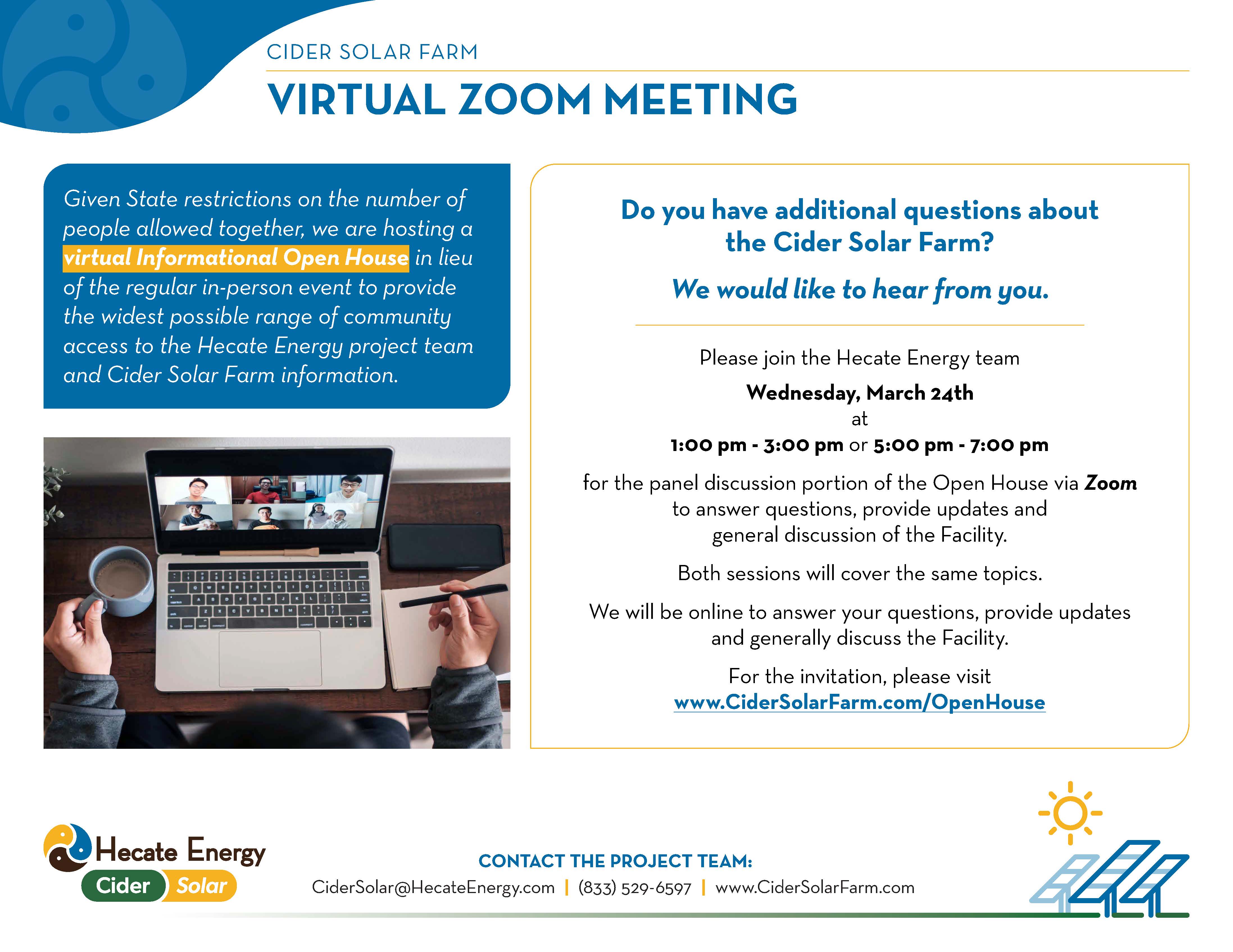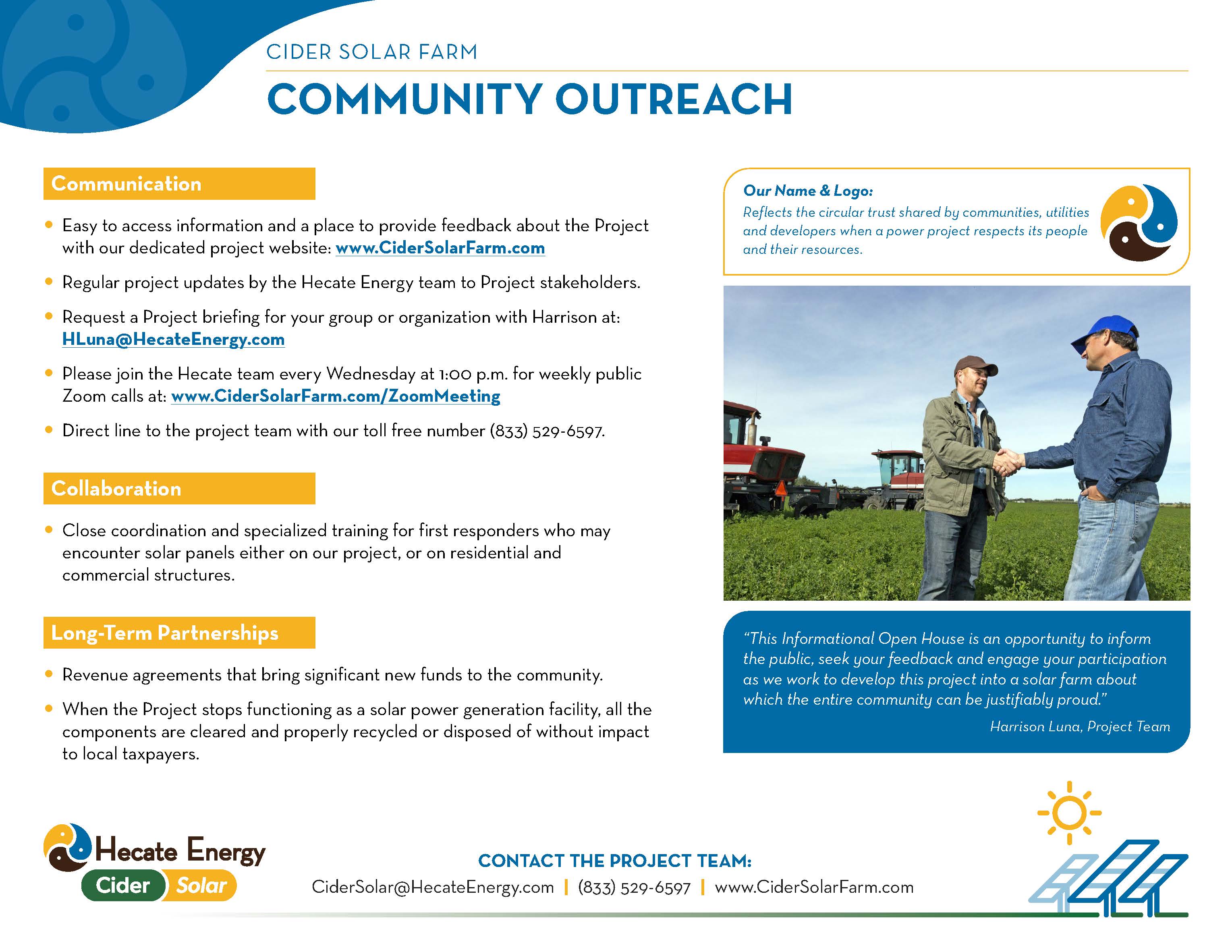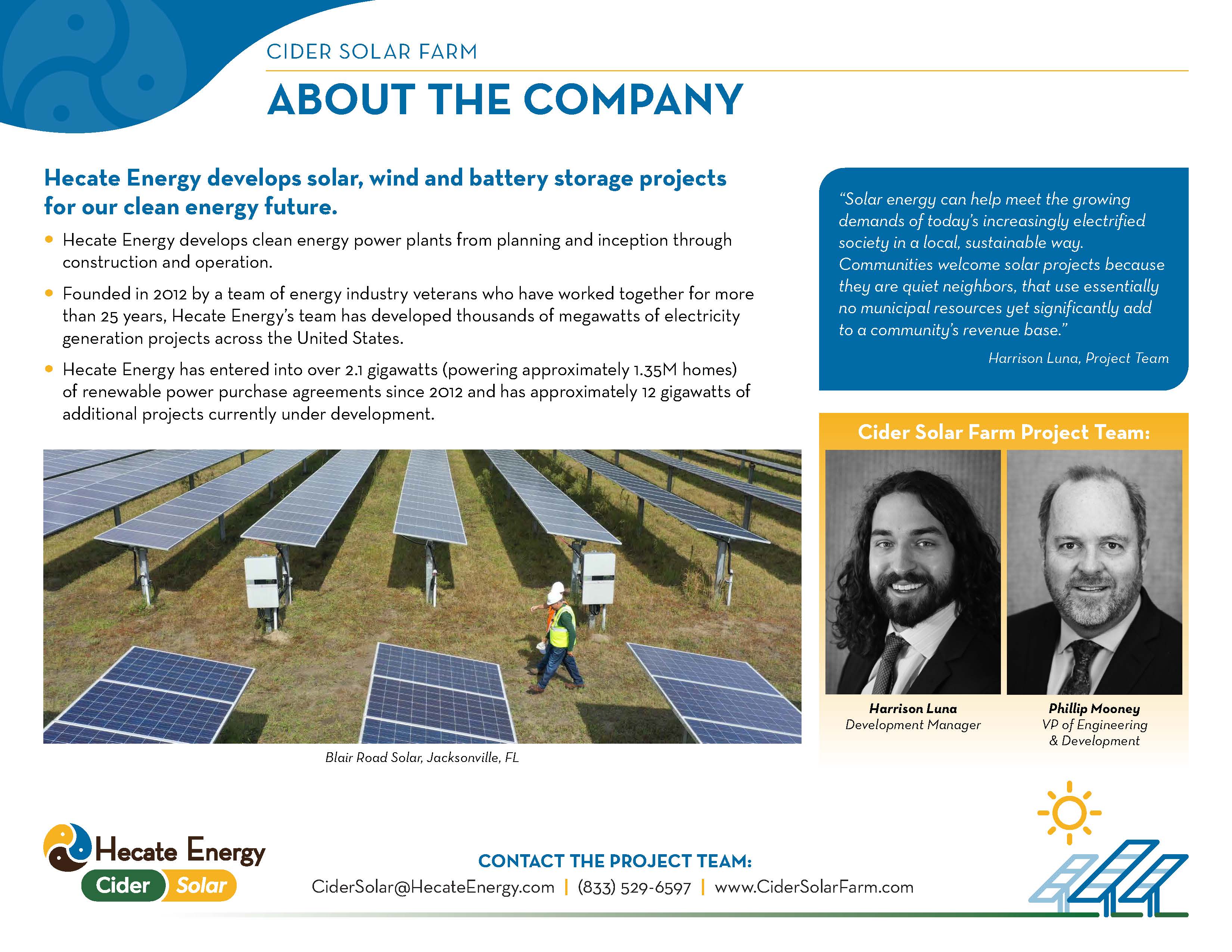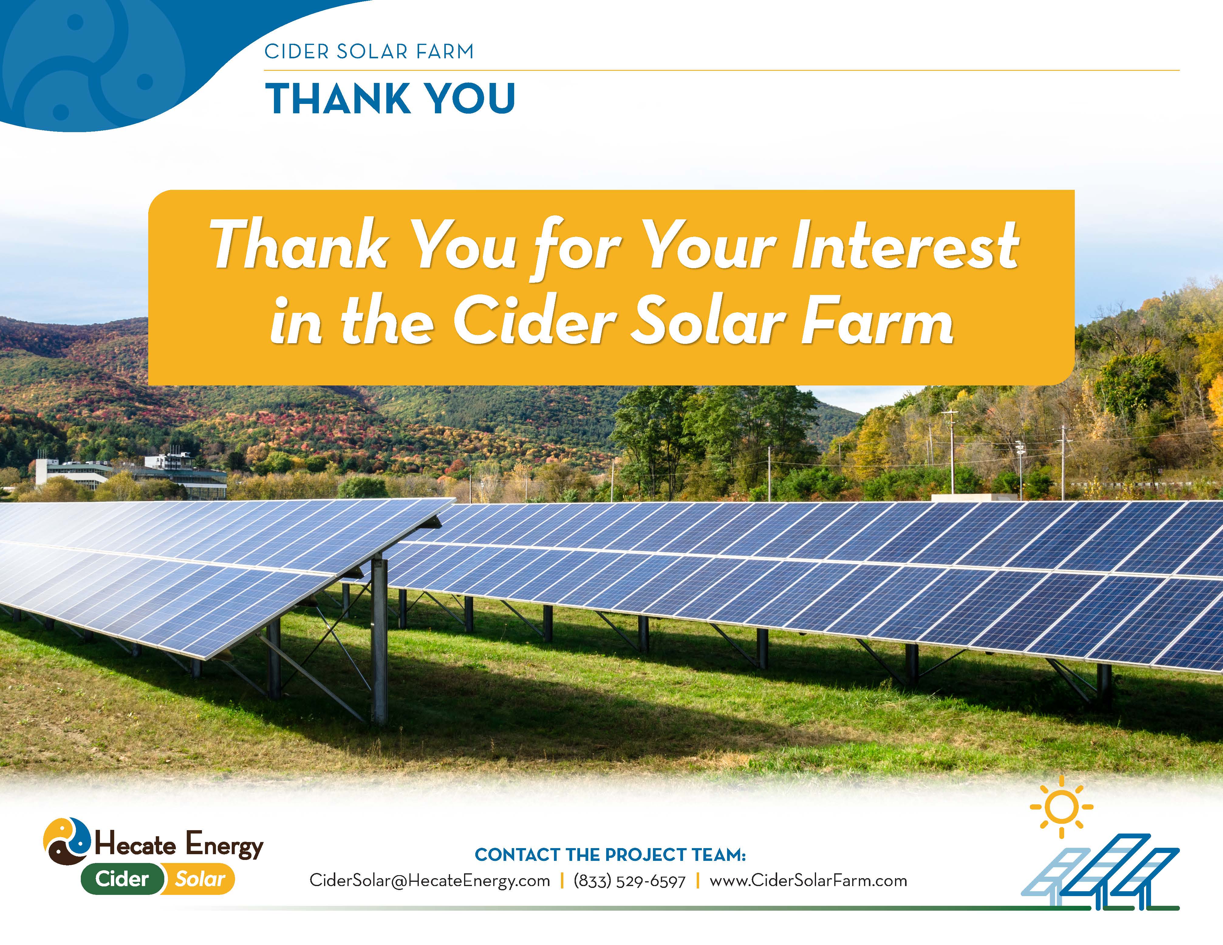 All comments and questions will be answered by the Hecate Energy team. Thank you for your interest in the Cider Solar Farm.